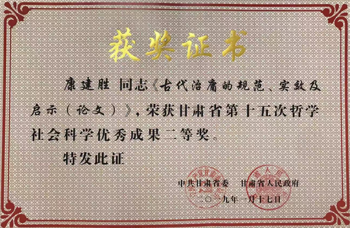 获奖情况:第十五次甘肃省哲学社会科学优秀成果二等奖