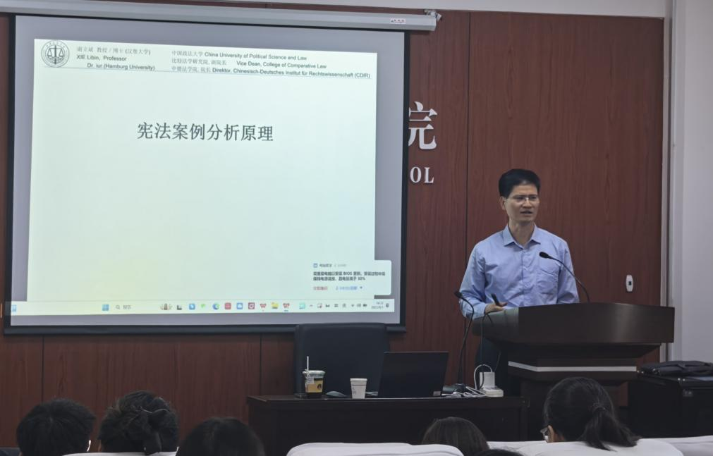 为强化同学们的宪法思维,提升同学们的案例分析能力,德国汉堡大学法学博士,中国政法大学比较法学研究院副院长、中德永利集团88304官网在线登录院长谢立斌教授受邀作为主讲嘉宾于9月1日下午在齐云楼1723举办《宪法案例分析原理》专题讲座。讲座由永利集团88304官网在线登录温昱副教授主持,永利集团88304官网在线登录师生积极参与本次讲座。